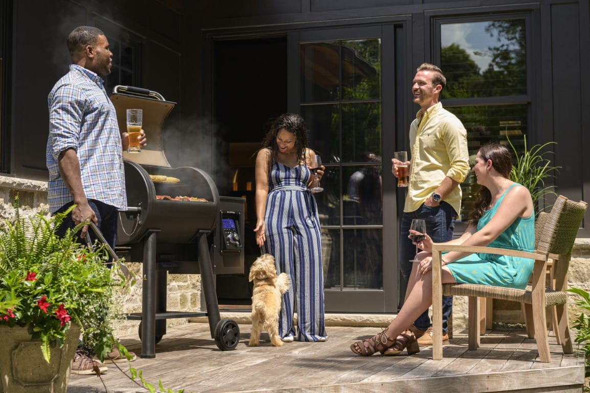 Grille na pellet zostały stworzone z myślą o grillowaniu metodą low&slow, co oznacza wolno i w niskiej temperaturze. Dzięki zastosowaniu naturalnego drzewnego pelletu potrawy zyskują dodatkowe dymne aromaty, które przenosza doświadczenia kulinarne na zupełnie nowy poziom. Urządzenie posiada cyfrowy panel sterowania oraz moduł Bluetooth / WiFi, który może być obsługiwany z Twojego smartfona, dzięki czemu masz wszystko pod ciągłą kontrolą. Dedykowana aplikacja pozwoli wybrać najlepsze ustawienie w zależności od przygotowywanego dania. Temperaturę możesz prezyzyjnie wskazać również za pomocą pokrętła do regulowania temperatury lub wybierając dedykowane tryby: Wędzenie, Pieczenie lub Grillowanie. Ten nowoczesny grill pelletowy posiada w zestawie dwie sondy do pomiaru temperatury grillowanych potraw. Grill na pellet samodzielnie pobiera odpowiednią ilość granulatu pelletu ze pojemnego zbiornika, który zostaje spalony w palenisku pozostawiając jedynie niewielka ilość popiołu.