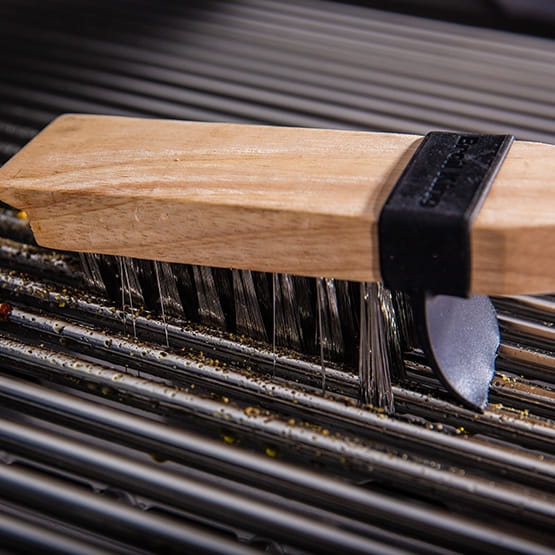 Największa, najmocniejsza, najdłuższe włosie - po prostu najlepsza szczotka do czyszczenia rusztów. To drewniana szczotka z ponadprzeciętnie mocnym włosiem o grubości 0.25 mm ze stali szlachetnej do zadań specjalnych. Głownia została zaopatrzona w skrobak oraz w gumowy chlapacz osłaniający przed odpryskującym tluszczem i zabrudzeniami. Całkowita długość szczotki to 50,8 cm.