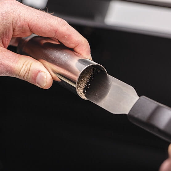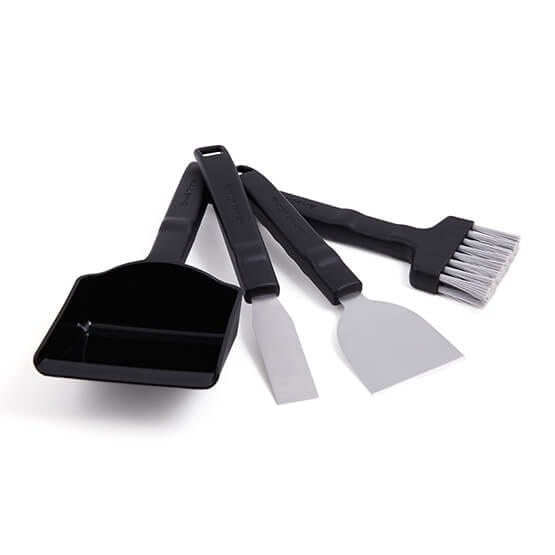 Regularna konserwacja urządzenia jest niezbędna, aby utrzymać grill w dobrej kondycji. Sam proces jest bardzo prosty, wystarczy wypalić pozostałości w wysokiej temperaturze, jednak popiół i tłuszcze osadzają się na ściankach piekarnika co może przysporzyć trochę kłopotu z okresowym czyszczeniem. Z pomocą przychodzi zestaw narzędzi do czyszczenia grilla, za pomocą którego z łatwością utrzymasz wnętrze grilla w należytym porządku. W skład zestawu wchodzą: wąska i szeroka szpachelka, szeroki pędzelek to zmiatania oraz łopatka. Szpachelki z łatwością zdrapują zabrudzenia, a dzięki dwóm szerokościom dotrzesz w każdy zakamarek.