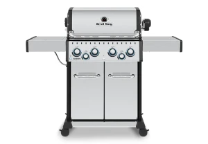 Grill gazowy Broil King Baron S490 z palnikiem bocznymi i rożnem.