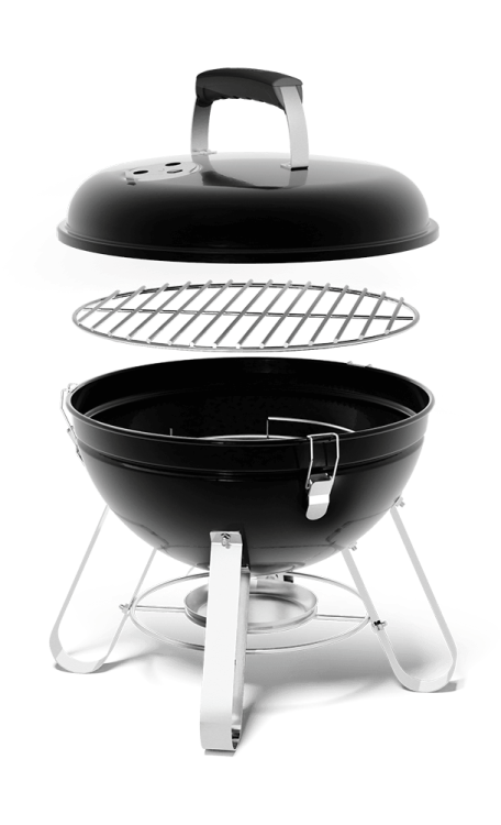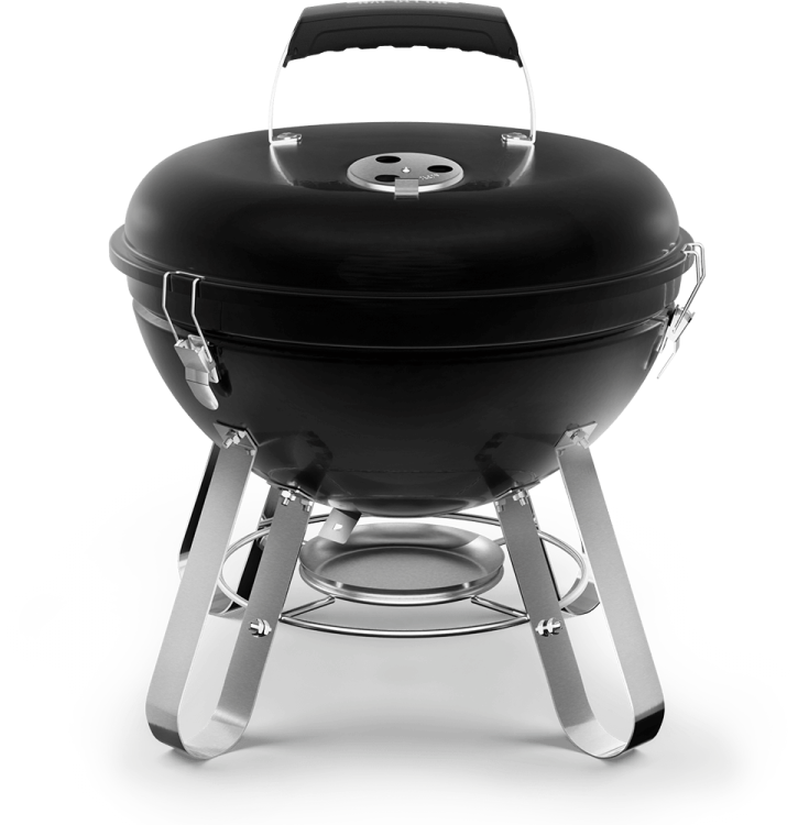 Przenośny grill kulisty 37 cm na węgiel drzewny z podwójnym koszykiem do grillowania bezpośredniego i pośredniego. Idealne rozwiązanie dla osoby chcącej grillować wszędzie — na działce, obozie czy plaży — bez kompromisu na jakość pieczenia.