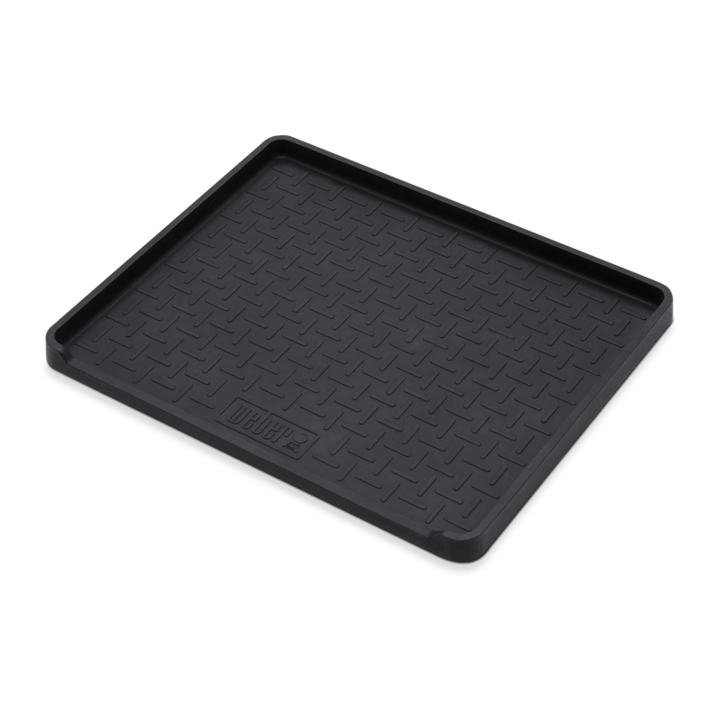 Mata silikonowa do grilla Weber chroniąca stolik boczny przed zabrudzeniem i zarysowaniem. Wytrzymuje wysokie temperatury, mieści wiele przyborów jednocześnie, podniesione krawędzie zatrzymują tłuszcz.