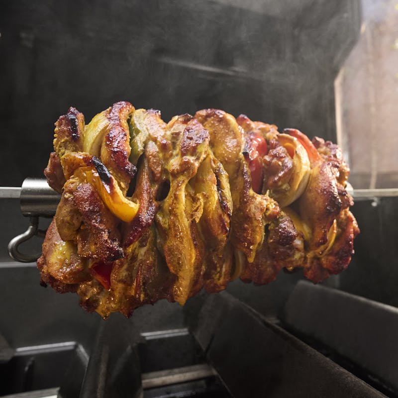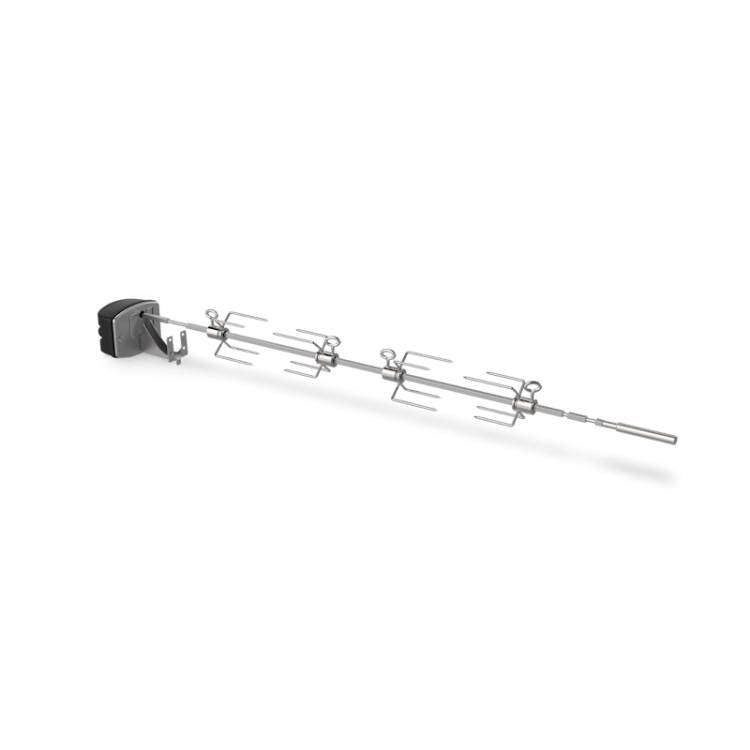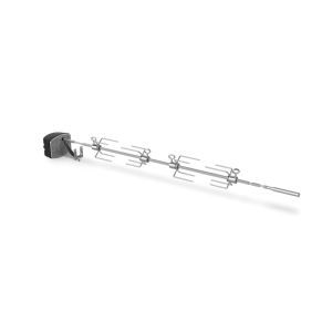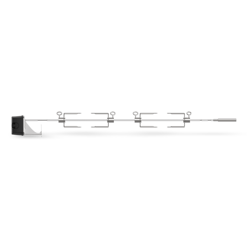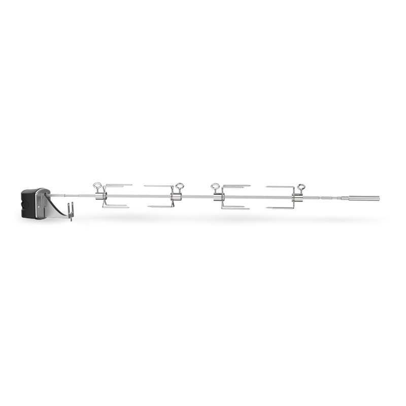Rożen ze stali nierdzewnej do grillów Genesis II i Genesis 400. Powolna rotacja nad rusztami zapewnia mięso soczyste i równomiernie przyrumienione — od całego kurczaka po kotlety wieprzowe.